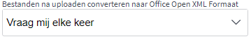 Indien binnen uw organisatie gebruik gemaakt wordt van Sharepoint als opslaglocatie voor bestanden, kunt u hier ook aanpassen of u indien mogelijk office bestanden wilt converteren naar een in Sharepoint bewerkbaar formaat. U heeft hier de keuze uit 'Altijd', 'Nooit', of 'Vraag mij elke keer'.