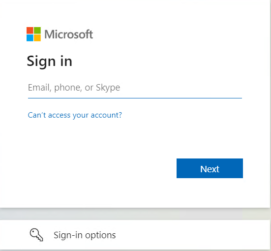 Het login scherm van Microsoft zal dan getoond worden (Eventueel kan hier ook het logo van uw organisatie in getoond worden).