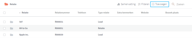 Ga naar een categorie en klik rechts bovenin op "Toevoegen".Als de categorie in meerdere views zit, dient u een keuze te maken in welke view u het item aan wilt aanmaken.